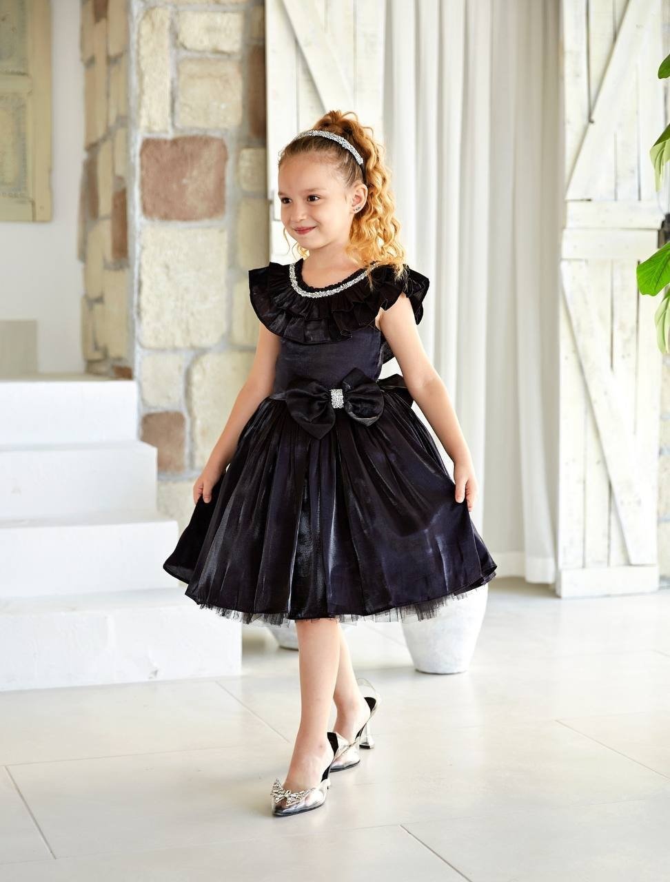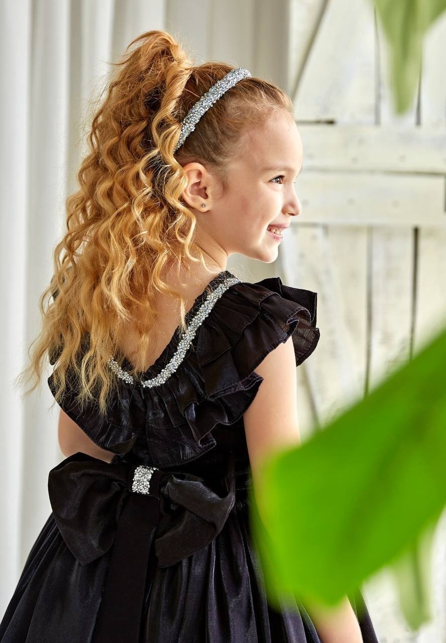 فستان أطفال أسود عالي الجودة يتميز بتصميم أنيق وعصري، مناسب للمناسبات الخاصة أو الاستخدام اليومي. الفستان مصنوع من قماش ناعم ومريح، مما يضمن راحة الطفل أثناء ارتدائه. يتميز الفستان بوجود طوق (ياقة) مزين بتفاصيل دقيق، مما يضفي لمسة جمالية وجاذبية على التصميم.